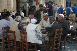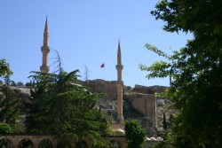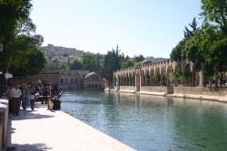 From Mt. Nemrut, we head off to Sanliurfa, a 3 hour drive south, crossing as we go the Euphrates, crossing into Upper Mesopotamia. Sanliurfa means “Glorious Urfa” – it was renamed after the residents defeated an attempted invasion by the French shortly after the end of WWI. It is also known as the City of Prophets, for it is famed as the birthplace of Abraham, the city in which he was immolated by the Assyrian King Nimrod and where God saved him by turning the fire into water and the coals into fish. Our first stop is the town’s main mosque, originally built as a Crusader church. We walk through town, visiting the covered bazaar, the cave in which Abraham was born, and the sacred pool that was created when the fire was turned to water. It is full of huge carp, who sit at the surface with their mouths open – they have been well-trained by the hordes of pilgrims, who buy fish pellets and feed them.