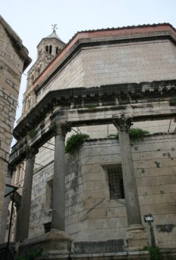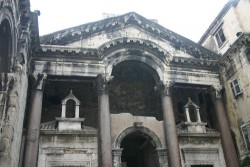 Once we get into the old town, we find a crazy mishmash of styles: Venetian Palazzo beside Roman ruin, beside Napoleonic Empire – reflecting the long history of Split and the many countries that have controlled it. Thankfully, there is little in the way of Cold War era Yugoslav architecture in the Centar. Most fascinating are the Palace and Mausoleum of Diocletian, the Roman Emperor, These buildings are halfway through a restoration, and will be quite magnificent when done. Much of the Palace can be renovated only because a bomb exploded on the site during the war (the 1991 war) and destroyed the houses that had grown up over the ruins of the palace. It was an archeologist’s delight – tons of garbage dumped into the palace over the years.