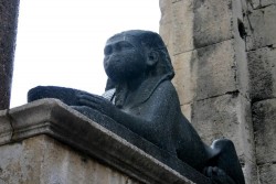 We head into Split via the suburbs and frankly are less than impressed. Industrial and unattended, they are not a very welcoming sight to first-time visitors. We negotiate the car to the “Centar” and find metered parking, but the meters aren’t working. Parking all along the Dalmatian Coast is somewhat of a problem – too many cars, not enough spaces. We have already been towed from our first parking spot in Primošten and now park on the other side of town in a pay lot, 15 minutes walk from Stara Vila. (As best we can figure, given the cars that are continually parked in the spot we were towed from, we were towed because of the French plates on the car.) Here in Split, we watch all the Croats park, try to put money in the meter, realize it is broken and walk away. We decide to take our chances, and head into the walled old city.