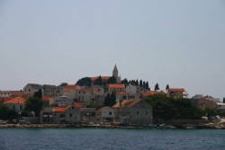 Traffic is heavy on the Austrian autobahn as we head out of Vienna early on this Sunday morning. The drive through the hills is easy – we note that the Austrian autobahns wind through the hills, gently rising and falling, unlike the Italian autostradas, which are much straighter and which use tunnels and bridges far more extensively. We make the Slovenian border in excellent time. We continue on the autobahn for another 30 kilometres, then it heads off to Ljubljana, and we, like most of the cars on the road, take the narrow local road for the 60 or so kilometres to the Croatia border. We get through quite easily, but the line of cars heading north waiting to cross back into Slovenia is kilometres long. A few kilometres into Croatia we hit the motorway to Zagreb. Our road atlas, dated 2003, shows us that from Zagreb south, about 350 kilometres, we will be on local roads, but we discover that in fact the new southern motorway opened on July 1 – and we zoom down the road, except for 1 short interval where we drive over a mountaintop because the tunnel through the mountain won’t open until next year. We see hundreds of cars with German, Dutch, Polish, Czech, Slovak, British, Italian and of course our French license plates, all heading south, all fully loaded with gear. We go through a long tunnel and emerge on the other side to views of the ocean – we have passed from the valley to the coast.