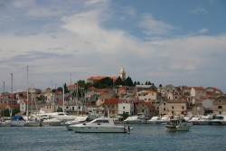 Clear blue sky, not too much wind – a perfect for diving in Croatia. We will do a wreck dive today – an Italian ship, the Murano, that was carrying coal for the Germans during WWII and that was sunk just off Primošten by a cannon on the mainland hill that rises above town. After 30 minutes on the boat, we are in position, and in we go. This is our 1st dive since Turkey and I am surprised at how comfortable I feel immediately on entering the water. The visibility is amazing – we can see forever down here the water is so clear. We go to the 30-metre depth, and it is so clear that looking up you can see the ripples on the surface – amazing. There are some fish – not like in Bali or Thailand, but certainly more fish than we saw when we dove in Turkey. This is not a coral area – the water is too cold for that. The wreck is interesting – more for the fish than the wreck itself, as most of the coal, the propeller, and the anchor have been salvaged. We see scorpionfish, lobster and shark eggs (but no sharks) today. After 35 minutes or so, Greg signals that he is going up and rises to the top, and I can see him getting onto the boat while the rest of us are hovering at about 5 metres in depth, using the rest of our air. When I go up, exhilarated from the dive, I find that he has not enjoyed his dive nearly as much as I – he didn’t take enough weight on his belt, and so has had to fight to keep from rising the entire time, using his air more quickly than the rest of us. Too bad – diving is so magical when you can relax and enjoy it.