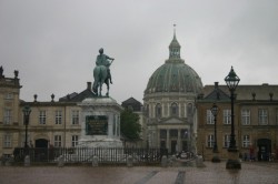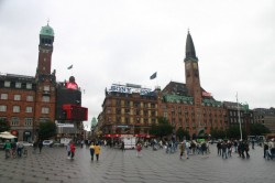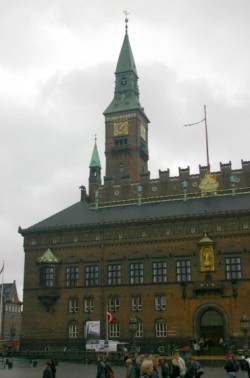 We have decided to brave the elements and do a self-guided walking tour of Copenhagen one that The Lonely Planet recommends. We start at the Rådhus (the City Hall) in the busy Rådhuspladsen and are to finish eventually, at the Little Mermaid in the harbour. We pass through the major pedestrian shopping area (we need more of these in North America!) pass Gammel Torv and Nytorv, the old and new squares, winding down to the Kongens Nytorv, a huge square, under restoration, circled by many glorious old buildings including the Royal Theatre and the Charlottsburg, that houses the Royal Academy of Arts. We then walk to the Nyhavn Canal, home to Hans Christian Anderson, who lived at number 67.