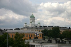 After a few hours exploring the town, we head back to the hotel for naps. A couple of hours later, we head downtown again for dinner (Thai – Helsinki is full of ethnic restaurants of all kinds) and some internet time. We head for home at about 10:30 p.m. and the sun is still way up in the sky. We still aren’t used to the light – it doesn’t feel right, somehow, to eat when the sun feels like it is at mid-afternoon height; and it doesn’t feel right to go to bed in full sunlight, even though it is bedtime. And we have both been wakened by the sun, even through drawn blinds, at 3:30 a.m. or so, as it makes its appearance for the new day.