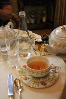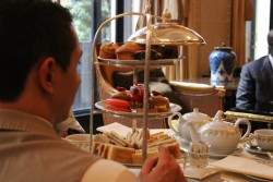 at the Four Seasons George V: Ahhh the simple joys of a wonderful cup of tea, served in the splendour of the Four Seasons George V, located mere steps from the Champs-Elysées. Don’t let the address throw you off your quest for a little pampering and experiencing luxe Paris. Make your reservation, shine your shoes, wear a jacket or hat, and enjoy this truly unique experience in style. Cheer yourself with a tall flute of champagne (Tête de Cuvée), and finish with a sumptuous, in-house-made macaroon. Pop by La Galerie between 3-6 for afternoon tea while enjoying the light and sure fingers of the house pianist. As you savour your experience, take in the elegance of the magnificent Flemish tapestries and ornate clocks originally made for the Palace Versailles. Spoil your luxe in Four Seasons serenity with their renowned service, opulent surroundings and white glove attention.