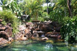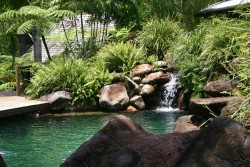 We are staying at Liberty, a resort situated in the Kuranda rainforest reserve. Although only 7 kilometres as the crow flies, we drive out of Cairns for about 25 kilometres, up and further up over windy mountainous roads until we reach the resort.