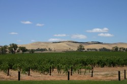 The day is warm in Barossa – probably 33 or 34°, but this is incredibly dry country, and there is absolutely no humidity in the air, so the heat is not oppressive. The entire day is a study in brown – except for the vines, which are green and lush, and the sky, which is a deep blue, cut by small wisps of white cloud. Many of the best vines are old – some are over 100 years (phylloxera has not been a problem in South Australia) – and these vines are green without irrigation because their roots have gone so deep they have found water naturally.