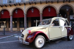 The Citroën 2CV (en francais: “Deux Chevaux”, “Deux Chevaux-vapeur”, literally “two steam horses” or “two tax horsepower”) is a front-engine, front wheel drive, air-cooled economy car introduced at the 1948 Paris Mondial de l’Automobile and manufactured by Citroën for model years 1948–1990. Our 2CV is circa 1971. However, the model design does not appear to have changed much. Conceived by Citroën’s then Vice-President Pierre Boulanger to help motorize the high number of farmers still using horses drawn carts in 1930s France, the 2CV is noted for its minimalist combination of innovative engineering and somewhat utilitarian, straightforward metal bodywork — initially corrugated for added strength without adding additional weight. Mulhouse seems to be the capital of Classic Cars!