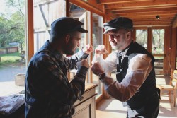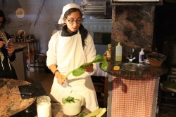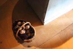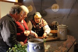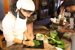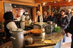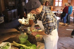 We wander the village in the beautiful early autumn sunlight, visiting the barber, the blacksmith shop, taste some Quetches Eau de Vie, and finally enjoy the fruits of our earlier cooking labours over lunch in the sunny courtyard.