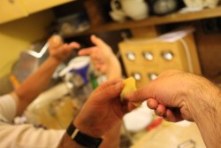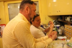 Our final meal in Mulhouse is exactly what the doctor ordered. Dr. Bach in this case. We have been invited to share un table d’hote at the charming B&B Le Jardin de la Tuilerie, straddling the town lines of Mulhouse and Pfastatt. Husband and wife team Henri and Rossella make for jolly and knowledgeable hosts as Henri takes us on a tour of their magnificent gardens, both vegetable and flower while Rossella busies herself with dinner prep. And what a dinner it is: Rossella’s mantra is both herbal/medicinal and also fresh from her garden. We start with a lovely FRESH beet salad, beets that Rossella pulled from the backyard only moments before! Onto a beautiful mushroom créme freshly foraged from their woodlot. Next comes a last of summer Gazpacho, a thin slice of parmesan gracing the top for salty zing, and a surprise finish of parmesan cream at the bottom of the cup. Incredibly good. Next: hand rolled tortellini (Rossella insists that we learn the proper way of rolling tortellini and one never argues with the Chef!) in a beautiful, light sage butter. Dessert is a cream and compote made of…….dandelion petals! We spend many moments attempting to determine what the taste is. Henri pulls out several bottles of his homemade grappa that we sip and discuss both the medicinal and pleasurable qualities of his eau de vie.
